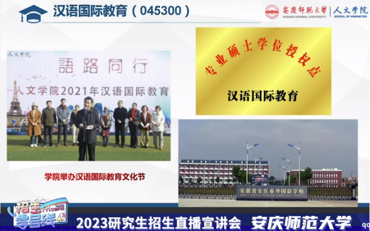 抓落实抓创新,“直播”宣讲促招生。9月22日,在研究生院的统筹安排下,beat365平台官方网站主动参与、积极配合,开展研究生招生线上直播宣讲。本次宣讲活动在哔哩哔哩、微博、微信、QQ等平台同步直播,吸引了众多考研学子关注,最高峰达3.6万人关注。在直播宣讲中,副院长沈志富老师、汉语国际教育专业张莹老师就beat365平台官方网站发展状况、师资力量、办学特色、人才培养、科研成果、学位点招生信息与就业前景等方面的情况作了详细介绍,对考研学子们提出的涉及奖助政策、报考资格、报考难度、招生指标、录取与调剂等共性问题作了详细解答,考生参与热情高涨,达到了良好的宣传效果。此外,汉语国际教育专业硕士2023年首次招生,成为本次招生宣传的一大特色和亮点。