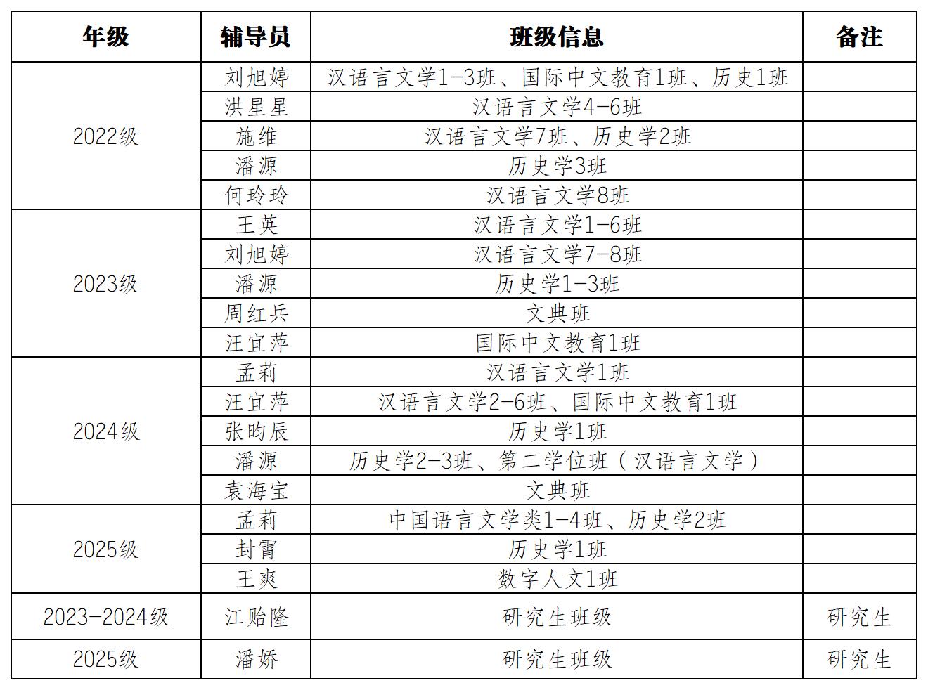 2024-2025学年度第二学期辅导员带班安排