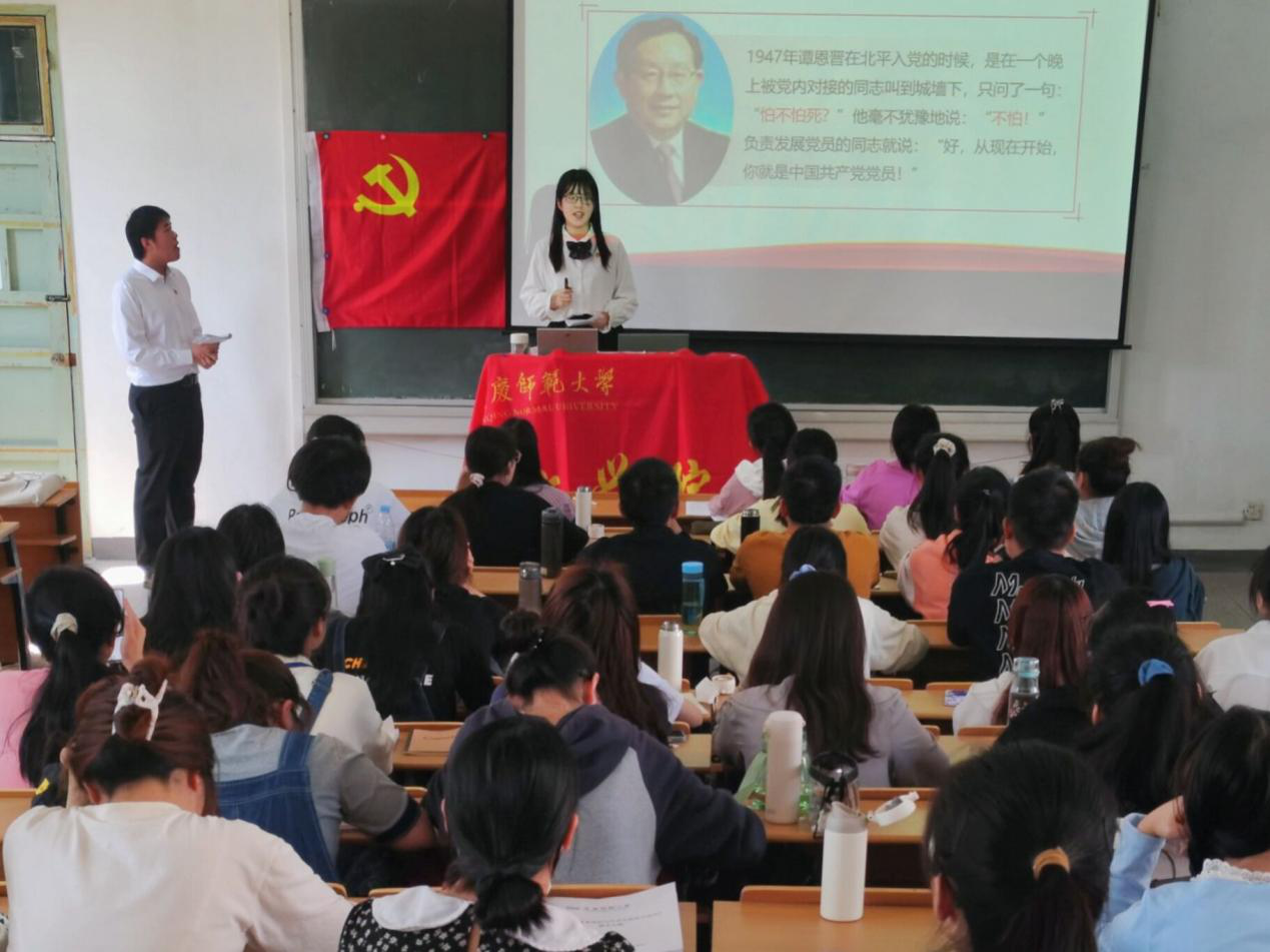 为持续推进党史学习教育走深走实,从党的百年伟大奋斗历程中汲取继续前进的智慧和力量,传承红色基因,感悟红色精神,不断增强听党话、跟党走的自觉性,5月4日,beat365平台官方网站“敬敷青年”党史宣讲团开展了以“中国共产党的韧性”为主题的党史宣讲活动。宣讲人为李士龙和邱田田,beat365平台官方网站第65期入党积极分子参加了此次活动。