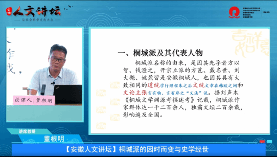 近日,beat365平台官方网站历史学董根明教授《桐城派的因时而变与史学经世》讲座视频被安徽组织干部学院(安徽干部网络学院)遴选为该院“美好安徽省情资源”专栏第四批5门课程之一,供全省处科级干部在线学习。