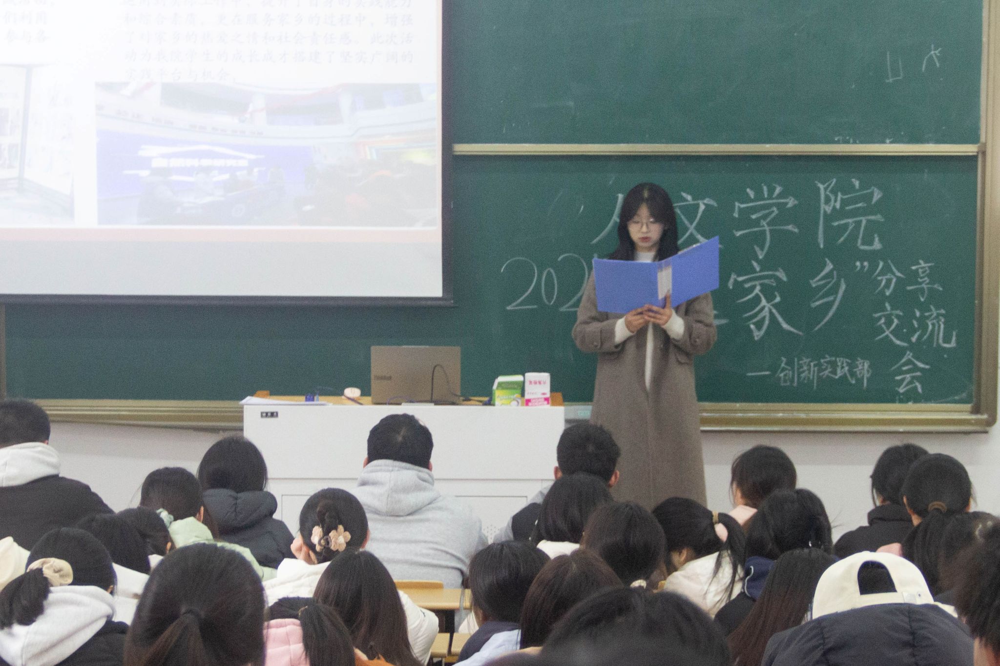 2月26日,beat365平台官方网站于教学楼214教室举办寒假大学生“返家乡”社会实践活动交流分享会。学生会主席潘晨宇、各部门部长、全体“返家乡”学子参加交流分享会,2024级汉语言文学专业文典班王诗瑶主持会议,优秀学生代表依次分享在社会实践期间的所闻所感。