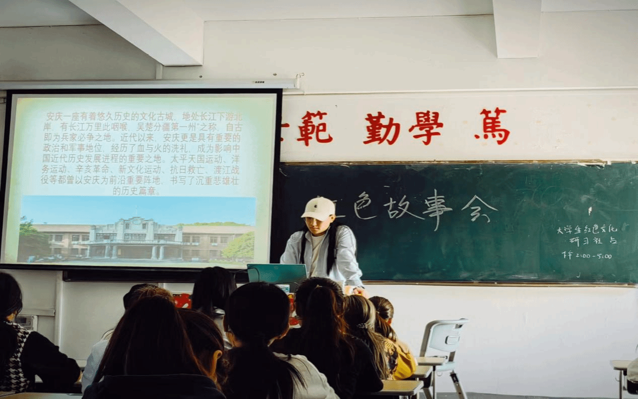 此次宣讲活动分为三个部分,从坐标安庆红色文化背景到讲述革命烈士陈延年、陈乔年英雄事迹,最后总结分享会的意义。活动伊始,2022级汉语言文学七班的陶虹同学说道:“安庆是一座有着悠久历史的文化古城,近代以来,安庆更是具有重要的政治和军事地位,洋务运动、渡江战役等都曾以安庆为前沿重要阵地,书写了沉重悲壮的历史篇章。”