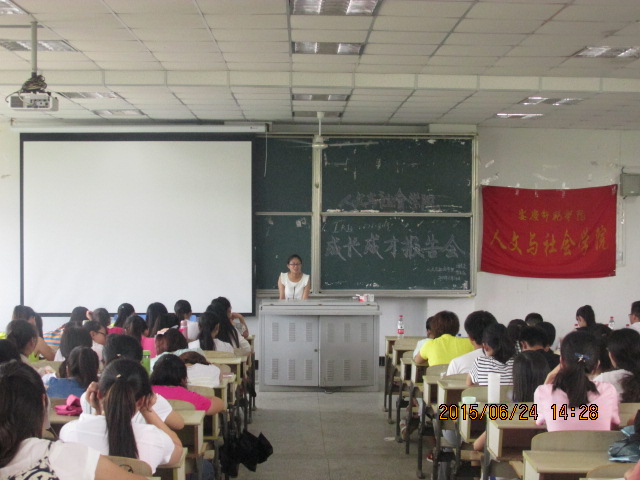 6月24日下午,人文与社会学院举办2015届优秀毕业生成长成才报告会,学院大一、大二全体学生聆听了报告会。