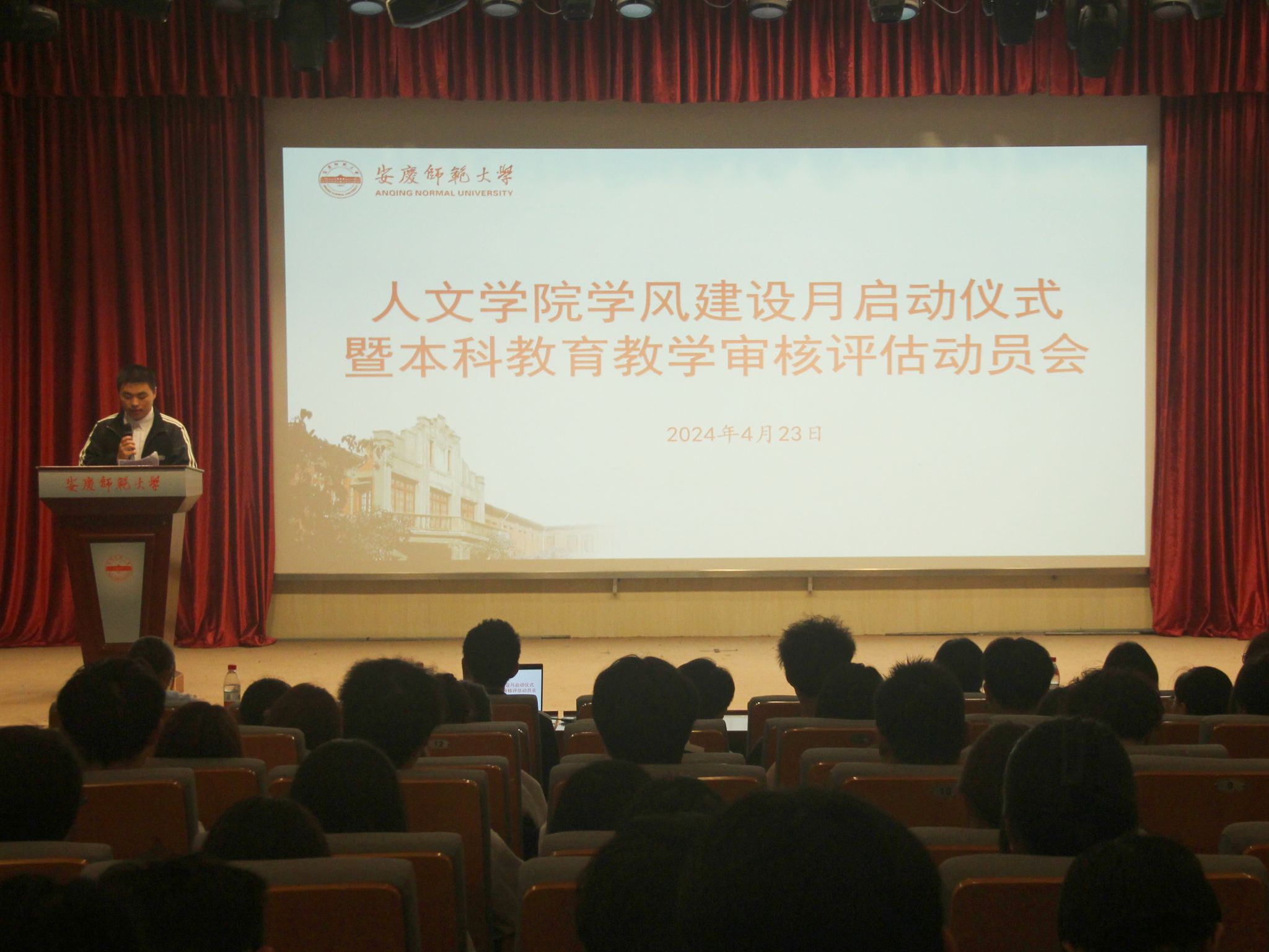 学生代表2022级汉语言文学类四班潘晨宇在会上呼吁,要以实际行动践行爱校荣校之情怀,以优异表现展示高质量育人成果,把此次机遇转化为成长成才动力,为实现高标准通过本科教育教学审核评估的目标贡献青春力量。