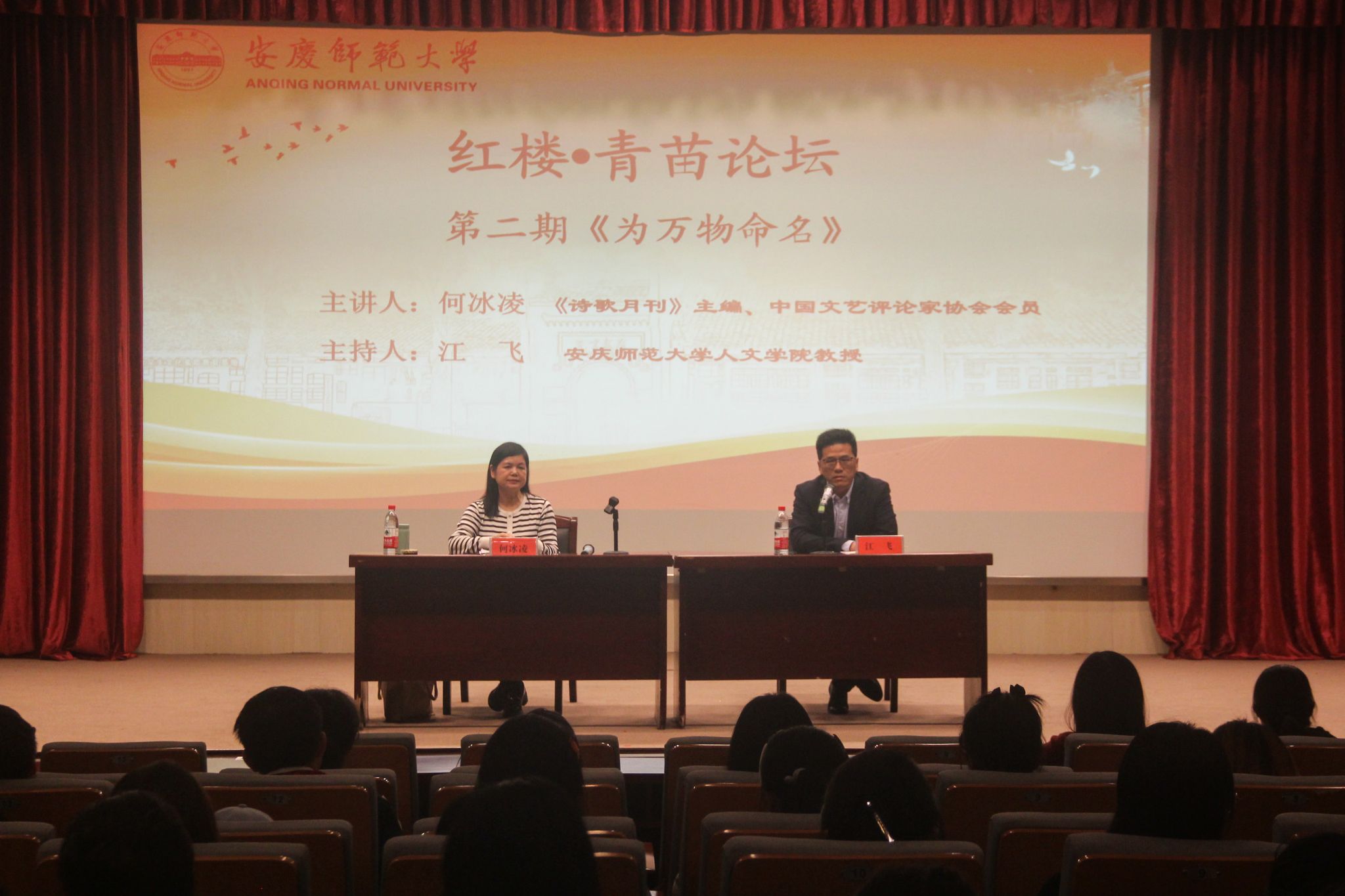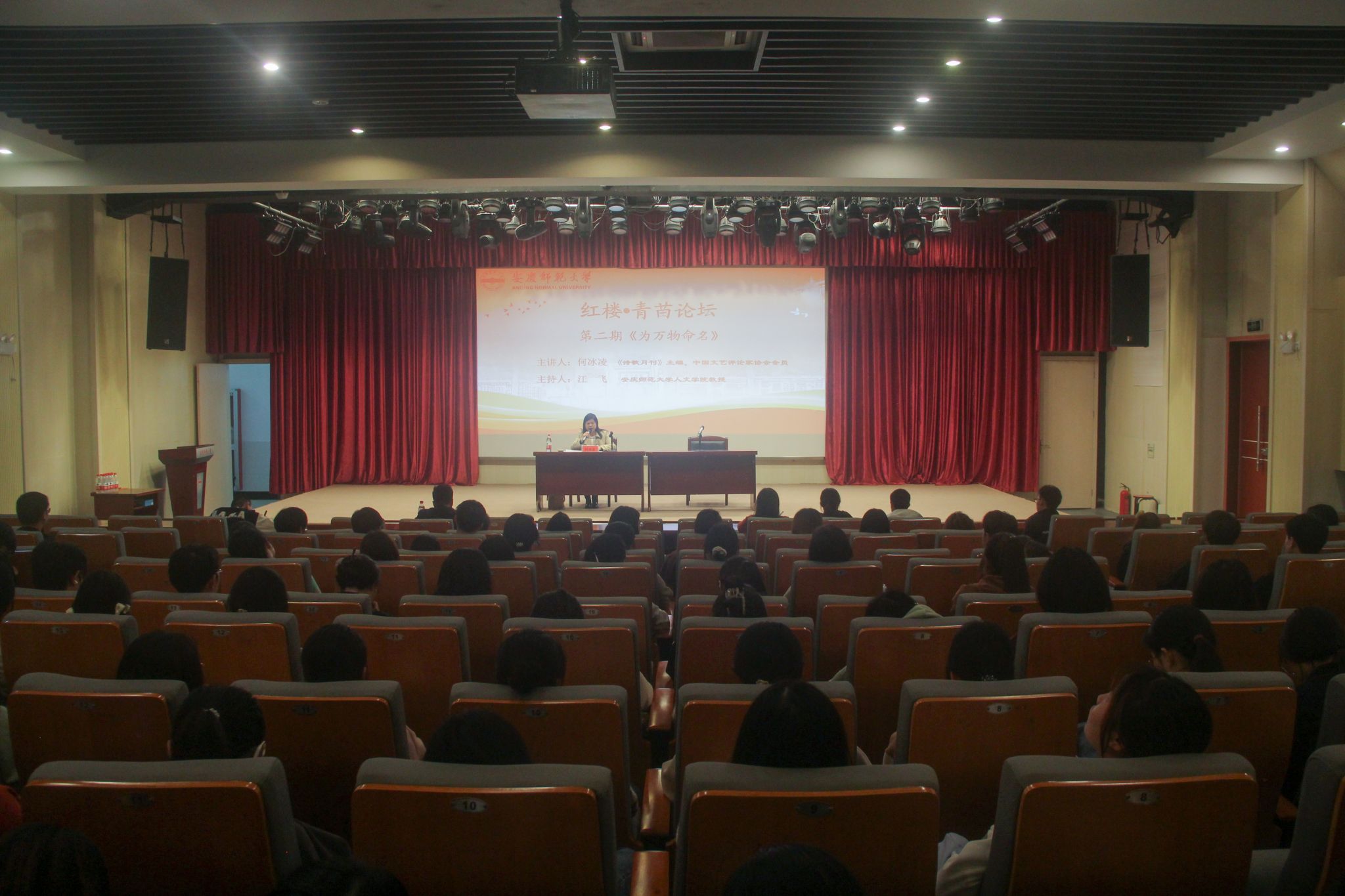 11月16日,著名校友、《诗歌月刊》主编、中国文艺评论家协会会员何冰凌应邀做客“红楼·青苗”论坛,做了题为“为万物命名”的诗歌创作经验分享。安徽省作协副主席、beat365平台官方网站江飞教授主持讲座,2023级、2024级文典班学生及白鲸文学社社员到场参与学习交流。