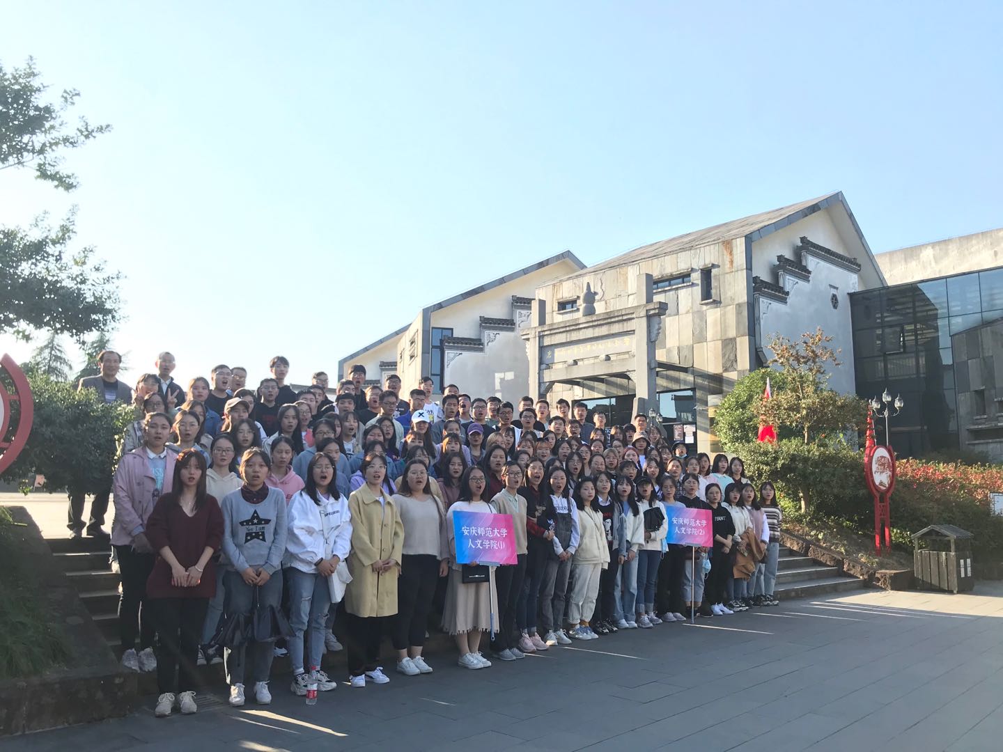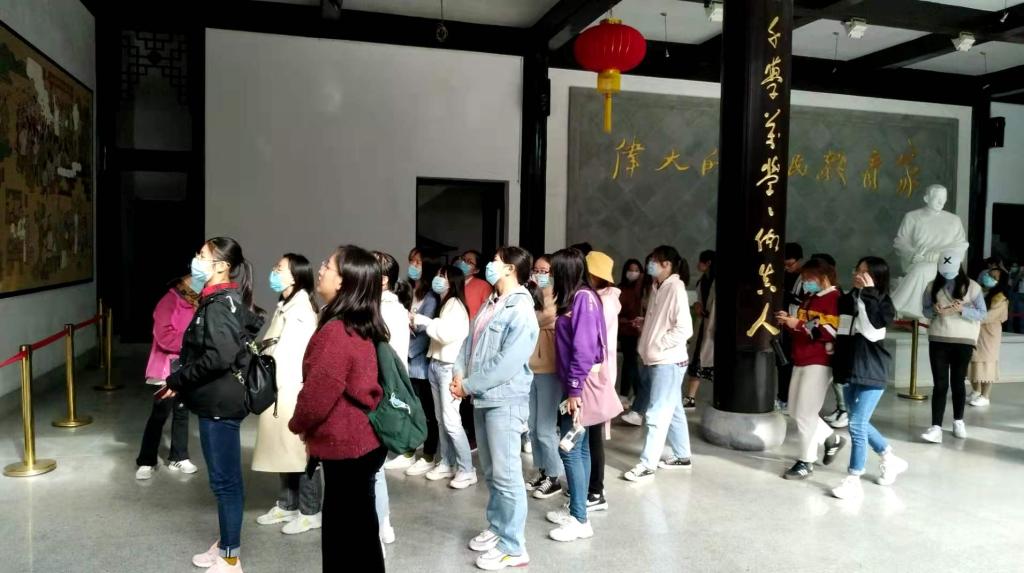 在岩寺新四军军部旧址,师生们共同瞻仰了老一辈革命家叶挺、陈毅等同志的光辉事迹,回顾了新四军在抗日战争中的光荣历史和艰苦奋斗历程,又一次接受了革命传统教育的洗礼。纪念馆里展出了关于新四军的各种珍贵的图片、文字、书籍、以及影视资料,全面再现了新四军战士在抗日战争中的战斗经历,将大家的思绪带到了那个战火纷飞的年代,师生们驻足认真感受那段历史,油然而生地对新四军为抗日战争的胜利、为中华民族的解放而做出的伟大贡献产生敬佩之情,深刻地感受到了革命先烈战斗环境的艰辛,也被新四军不怕牺牲、不惧万难的革命勇气和决心所震撼。从纪念馆出来后,同学们在纪念馆广场上叶挺等5位革命家们的雕像前齐声诵读了叶挺名作《囚歌》。