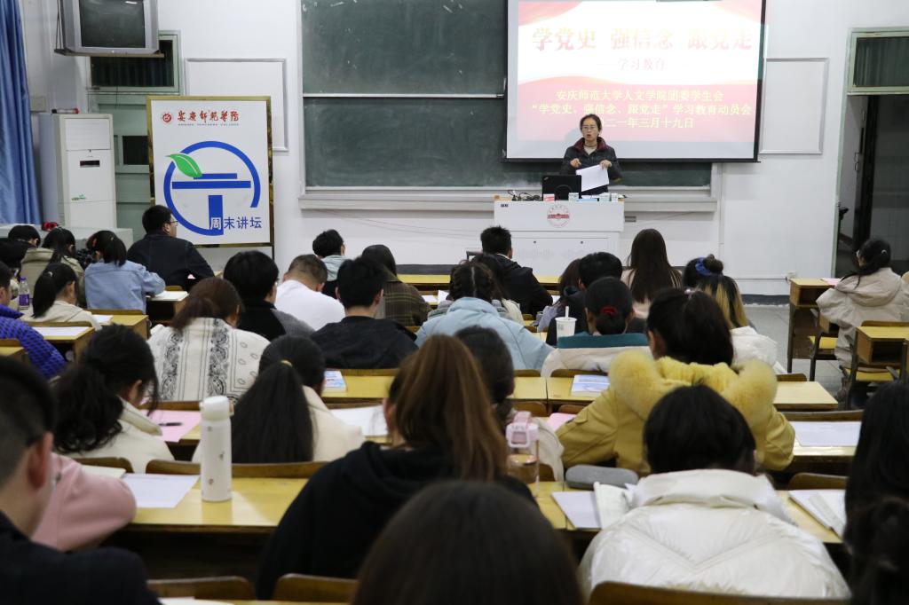 为了深入学习贯彻习近平总书记在党史学习教育动员大会上的重要讲话精神,全面贯彻党史学习教育的部署,3月19日,beat365平台官方网站召开“学党史、强信念、跟党走”学习教育动员大会。院团委负责人刘旭婷老师出席会议并讲话,院团委和学生会各部门负责人,各班班长、团支书及学习委员参加此次会议。