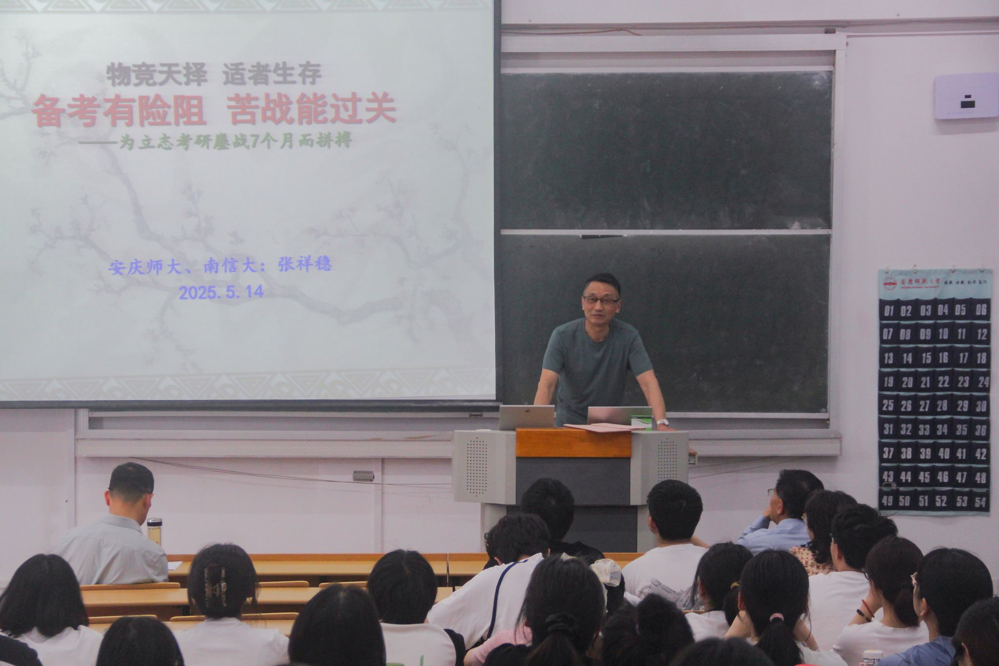 5 月 14 日,beat365平台官方网站在教学楼 315 教室举办“授业解惑,共赴研途”师生考研交流会。本次活动邀请“天柱学者”特聘教授张祥稳、研究生辅导员江贻隆、历史学博士郭海涛担任主讲嘉宾,beat365平台官方网站副院长沈志富主持。