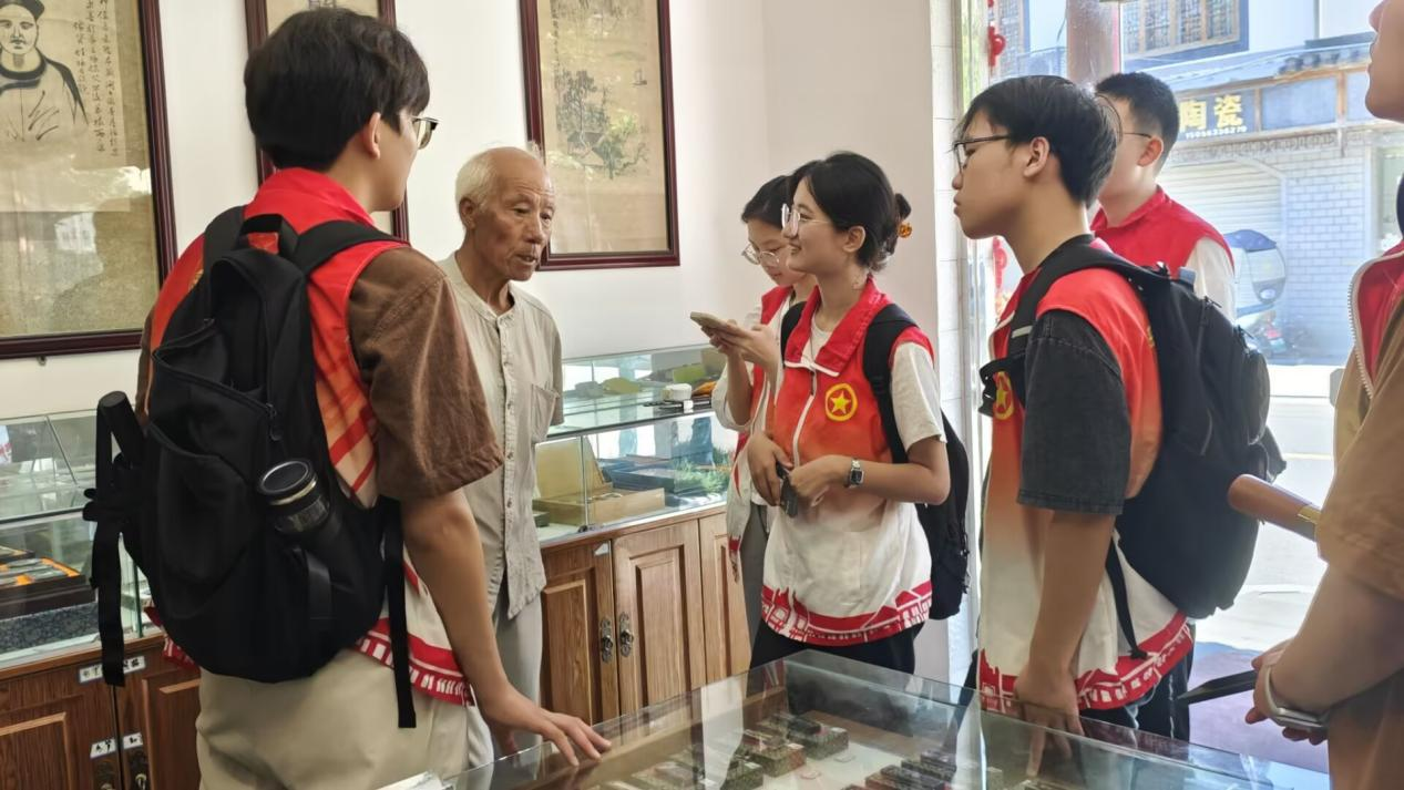 徽墨以精选马尾松根枝烧制的松烟为原料,经炼烟、制墨、晾墨、修边、描金等十余道工序锤炼而成。“墨汁是化工品,墨锭承载的是文化沉淀”,墨厂第八代传承人,70岁的胡嘉明手持墨锭,向实践团成员介绍徽墨制作古法技艺。团队成员观察到,古法制作不只是流程的复刻,更继承了古人在徽墨里添加中药防蛀留香的智慧,将实用与文化精妙融合。