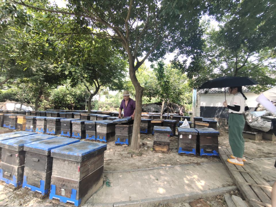 调研团队首先对养蜂户程爱兵进行采访,程爱兵从事养蜂将近三十年,蜂蜜产品已有稳定经销途径,基本处在供不应求的状态。在政府的帮助扶持下,现正将养蜂产业向周边农户推广,让更多人投入养蜂这一行业中,同时也考虑运用网络电商平台,拓宽销售渠道,推动乡村传统产业,走向共同富裕道路。
