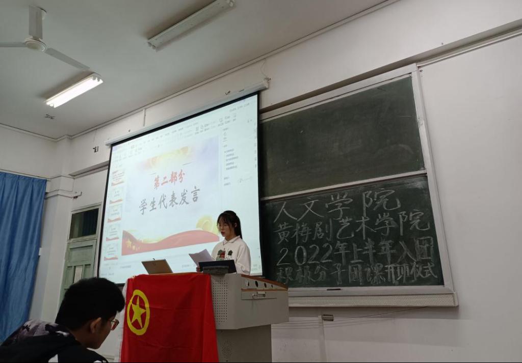 为强化团组织建设,做好团员发展工作,加深入团积极分子对共青团的认识,4月13日,beat365平台官方网站、黄梅剧艺术学院在教学楼315教室联合举办了2022年上半年入团积极分子团课开班仪式。beat365平台官方网站团委书记刘旭婷老师进行第一堂授课,两个学院近百名入团积极分子参加了团课。