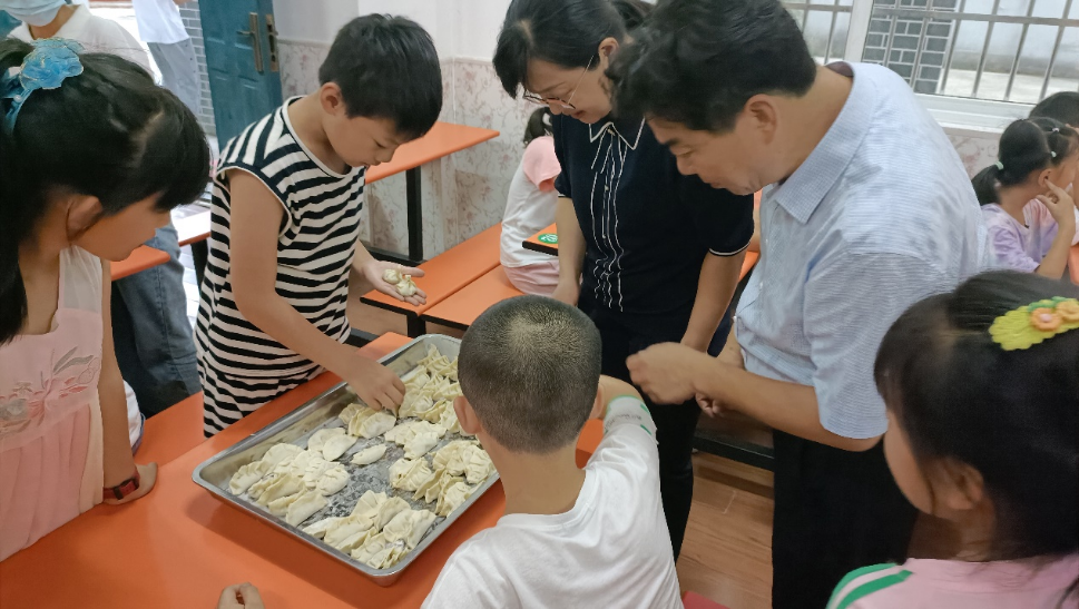劳动教育是小学生德智体美劳全面发展的主要内容之一,是中国特色社会主义教育制度的重要内容。实践团欧慧琴同学向孩子们介绍了劳动的意义与重要性,帮助同学们树立了正确的劳动观。在校食堂的协作下,欧慧琴同学带领孩子们亲自动手包饺子。在劳动结束后,孩子们获得了巨大的成就感,劳动的价值已然明晰在每个人心中。