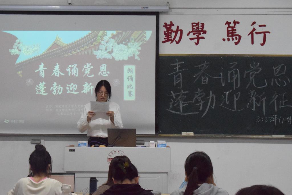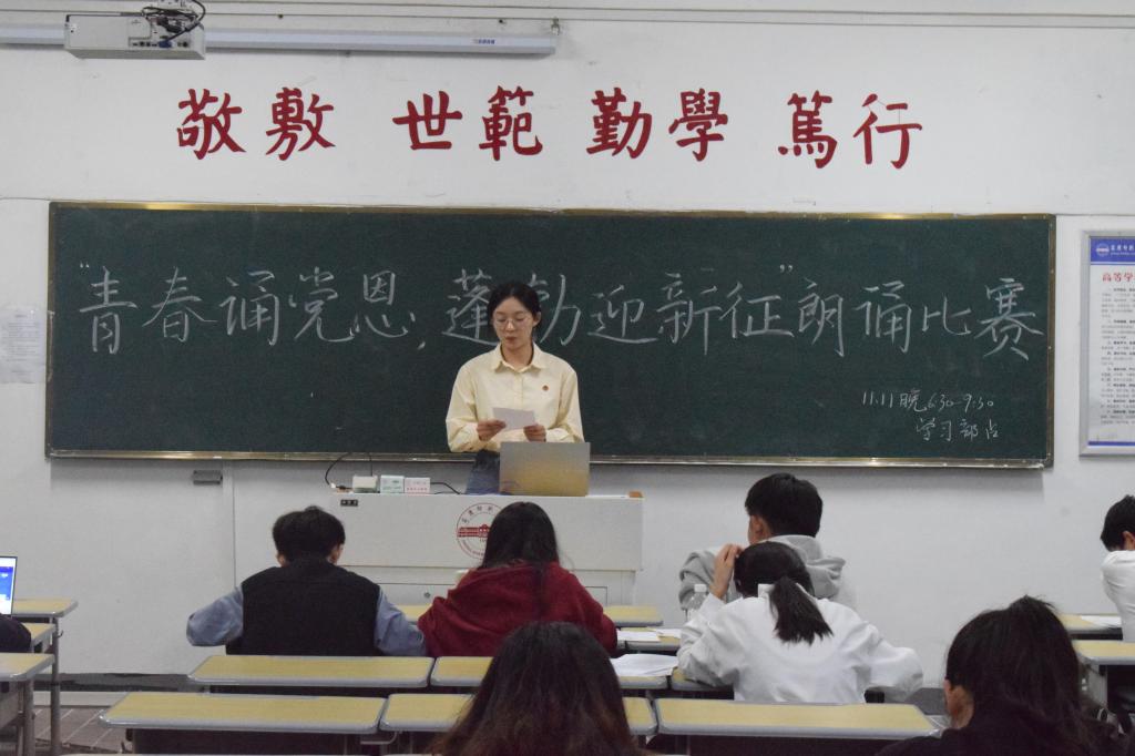 为庆祝党的二十大成功召开,弘扬党的二十大精神,提升beat365平台官方网站学子们的凝聚力和整体素质,努力营造积极进取、活力无限的氛围,beat365平台官方网站1于11月11日在教学楼310、311教室举办“青春诵党恩,蓬勃迎新征”朗诵比赛,近70名同学参加了此次比赛。