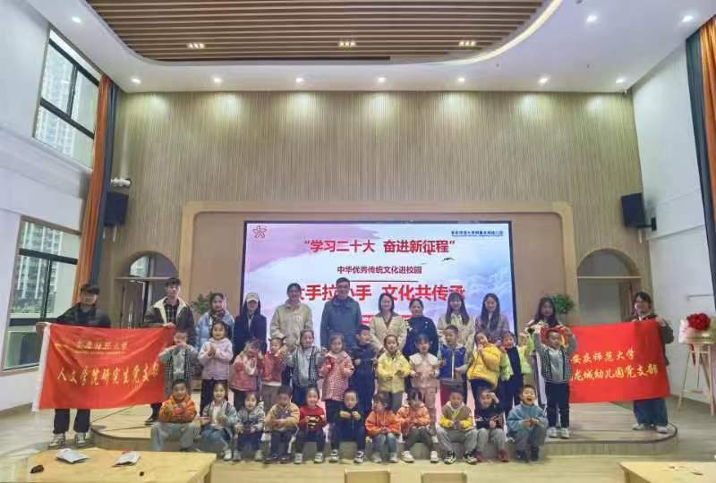 11月16日,“中华优秀传统文化进校园——大手拉小手,文化共传承”活动暨实践教学基地揭牌仪式在学校附属龙城幼儿园举行,beat365平台官方网站党委副书记王波,附属龙城幼儿园园长姚萍出席活动,并为基地揭牌。beat365平台官方网站卢娇博士、团委人潘源、研究生党支部及及幼儿园骨干教师参与活动。