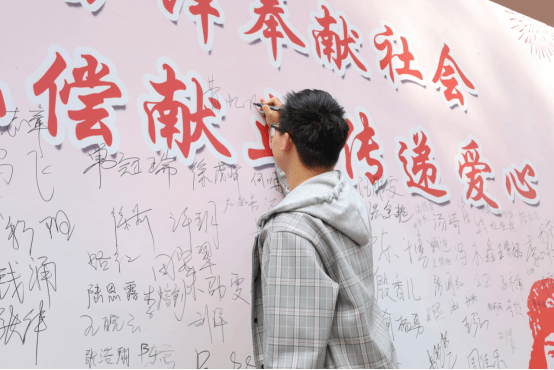 “这已经是我第二次献血了,相比去年,今年的氛围更好,同学们都表现得很有积极性。发扬雷锋精神,可以从点滴奉献做起,担起我们新时代青年人的责任。”汉语言文学专业2021(7)班的曹忆凡从献血车走下来,笑着说。随后,他在志愿者指引下,在食堂门口的展示板处签字留影。