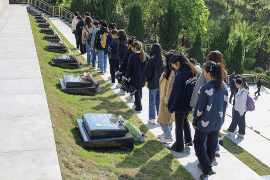 在君山岭烈士墓,大家怀着沉重的心情,瞻仰缅怀了长眠于此的400余名无名烈士和革命烈士。一座座墓碑迎风林立,排列成无言军阵,碑上用鎏金的工整方正字体刻写了烈士们的英雄事迹、人物生平。学生们凝视着这些碑文内容,纷纷肃然起敬。