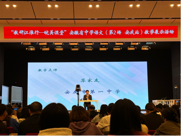 本次活动由安徽省教育科学研究院主办,安庆市教育教学研究室、黄山市教育科学研究院联合承办,以“数字化支撑的+跨学科学习整本书阅读教学(初中)和文化自信的语文学科表达(高中)” 为主题,采取线上线下相结合的方式,以展示课、说课、评课和专题报告为主要形式。安徽省歙县中学语文教师、安徽省优质课评比一等奖获得者吴媛老师、省教坛新星郭亚慧老师围绕《乡土中国》整本书阅读分别进行讲课和说课,理性当中充满语文味,充分体现了高中文化自信的理性表达,课程中数字化支撑的整本书阅读以及跨学科语文创设的具有生活化的阅读情境,引发了学生共鸣,增加了学生的学习兴趣,丰富了学习的内容形式,补充了教学资源,拉近了学生和所学内容的距离,建构了开放的结构环境。安徽省教坛新星、安庆市“十佳青年教师”、安庆四中语文组教研组长汪婷婷老师和省青年教育教学能手吴继杰老师展示的是《朝花夕拾》阅读课的不同阶段,都体现了整本书阅读由导读到推进到成果展示的课程理念,都以新课程标准为理论依据,以信息技术为支撑,兼顾跨学科融合,拓宽了学生的视野,提升了学生的综合能力和创新能力,有效提升了学生的核心素养。