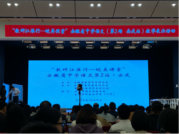 10月9日,beat365平台官方网站2024级学科教学(语文)班27名研究生在我校校外硕导、安庆一中教研室副主任、省特正高级教师苏家友老师带领下,走进安庆绿地实验学校,现场观摩“教研江淮行•皖美课堂”安徽省中学语文主题教研活动。