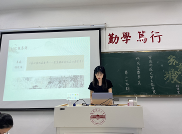 10月18日晚上,2024级学科教学(语文)专业硕士研究生在菱湖校区教学楼208教室举办第三十九期读书会。本次读书会由24级学科教学(语文)硕士研究生冯佳佳主讲,学院叶当前教授受邀参加并现场指导。24级学科教学(语文)专业方向研究生全体学生参加此次读书会。