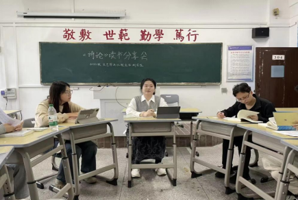 本次读书会分为书目介绍、分享讨论和老师指导三个环节,阅读书目为朱光潜所著的《诗论》。分享会上,主持人简要介绍了朱光潜先生的生平事迹及其在诗歌理论领域的贡献。随后,每个同学依次分享了他们对《诗论》的阅读感悟,分别围绕《诗论》中的写作结构与章法、意境和意象、对传统诗话的超越、思想情感与语言文字的关系、中西方对诗与画的性质辨析、朱光潜先生对王国维境界说的批评与重构等角度展开探讨。