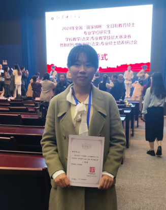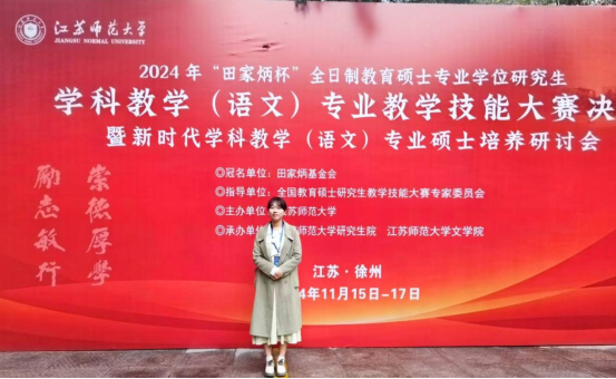 2024年11月15-17日,由“田家炳杯”全日制教育硕士专业学位研究生教学技能大赛专家委员会指导,“田家炳教育基金会”冠名,江苏师范大学主办的2024年“田家炳杯”全国高等院校全日制教育硕士学科教学(语文)专业教学技能大赛决赛在徐州举行。beat365平台官方网站学科教学(语文)专业硕士生导师蔡伟保老师带队,2023级学科教学(中文)张贤琨同学参加本次决赛并获得三等奖。