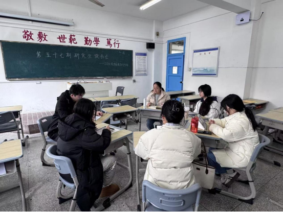 12月18日下午,24级中国语言文学现当代文学方向研究生在菱湖校区教学楼304教室举办第五十七期研究生读书会。本次读书会由24级中国现当代文学方向硕士研究生李珂馨主持,beat365平台官方网站庞云芳老师受邀参加并进行现场指导,24级中国现当代文学方向硕士研究生全体学生参加此次读书会。