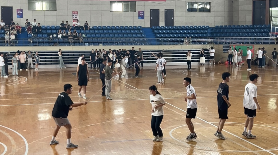 本次运动会分师生组和学生组,学生组包含“心心相印”“一圈到底”“集体跳绳”项目,师生组包含“齐眉棍”“两人三足”“趣味投篮”“拔河”项目。活动现场,老师和同学们齐心协力、挥洒汗水,经过半天时间的激烈角逐,在“趣味投篮”和“一圈到底”项目中获一等奖;在“拔河”项目中获二等奖;在“一圈到底”中获三等奖2项,最终以总积分第二名的成绩荣获优秀组织奖。