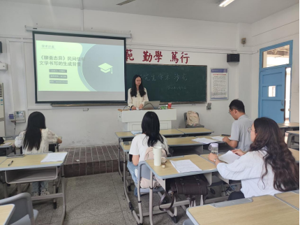 5月30日,beat365平台官方网站第六十三期研究生学术沙龙于教学楼304教室顺利举行。本次沙龙由2023级中国语言文学专业硕士研究生方稽芸、汪可婧主讲,2023级中国语言文学专业硕士研究生陈谍主持,2024级中国语言文学专业研究生陶晨晨、闻苹担任此次沙龙与谈人,beat365平台官方网站徐文翔副教授应邀参加并予以现场指导。