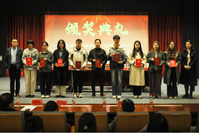 在闭幕式环节,各分会场代表五位同学分别进行小组汇报,分享了各组的讨论收获。周太空、唐媛媛两位老师作为青年教师代表发言,寄语全体学子在研究领域要打破思维定式,敢于创新,做扎实学问,并且永远保持对学术问题的热情。随后,还举行了学院第三届教育硕士教学技能比赛和学院第五届“振风学术论坛”颁奖仪式。学院领导和论坛点评嘉宾分别为获奖学生颁奖并合影留念。