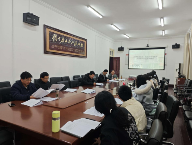 12月18日下午,beat365平台官方网站beat365平台官方网站2024级文艺学、比较文学与世界文学硕士论文开题报告会在红楼二楼会议室顺利举行。本次开题报告会由金松林教授主持并担任组长,周红兵副院长、叶当前教授、江飞教授、王广州副教授担任评委,李忠超博士担任答辩秘书,2025级文艺学、比较文学与世界文学硕士研究生旁听了本次开题报告会。