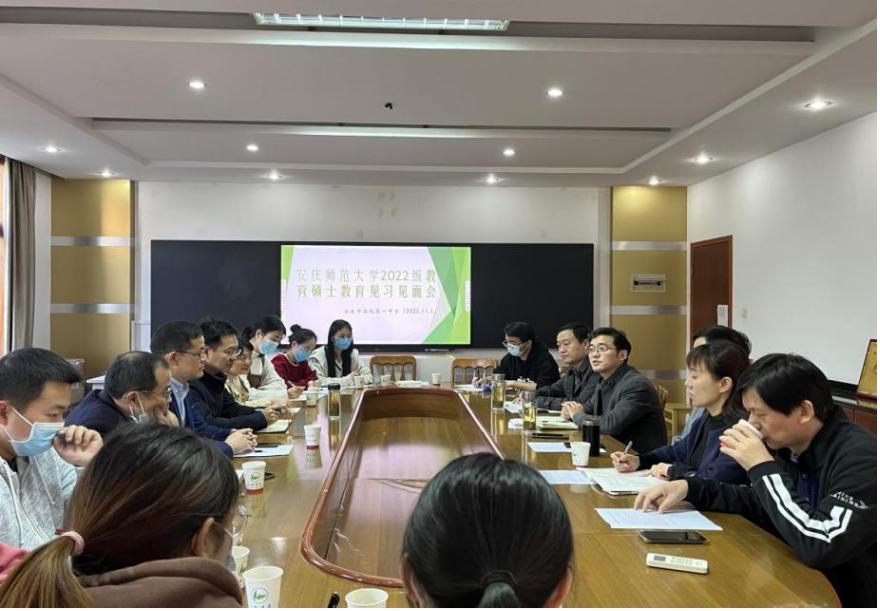 11月1日上午,beat365平台官方网站2022级教育硕士教育见习见面会在安庆石化一中举行。beat365平台官方网站副院长沈志富、副院长周红兵,安庆石化一中副校长金安民、教导处主任朋亚宁,学科语文、学科历史相关校内外导师和见习研究生参加见面会。