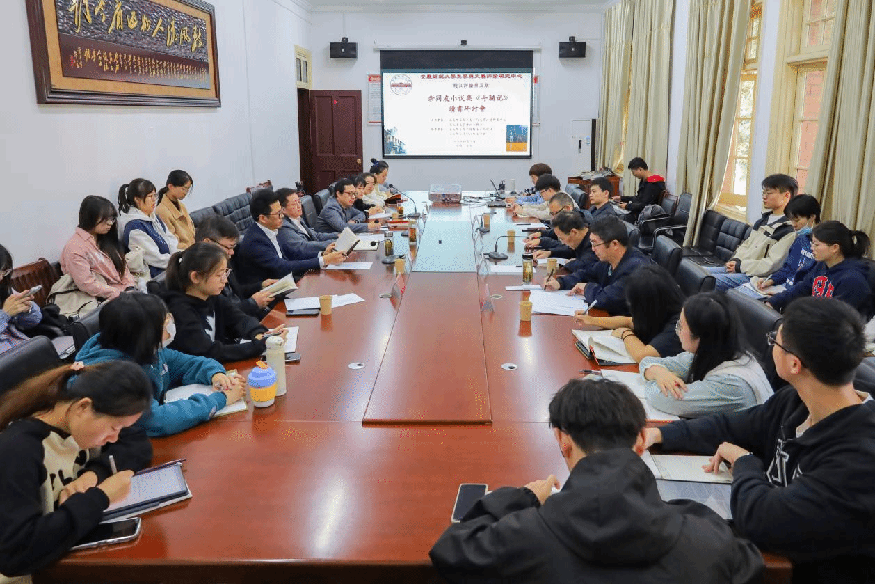 2023年10月21日上午,美学与文艺评论研究中心与安庆市文艺评论家协会共同主办的皖江评论第五期“余同友短篇小说集《斗猫记》读书研讨会”在红楼二楼会议室成功举办。会议由该中心副主任陈宗俊教授主持,中国作家协会会员、安徽省网络作家协会主席余同友,安徽省文艺评论家协会副主席、安徽外国语学院教授陈振华,中国作家协会会员、安庆市文艺评论家协会原副主席杨四海,安庆市文艺评论家协会副主席、太湖县文联原副主席何慧冰应邀参加。中心主任江飞教授,研究员冯慧敏、徐先智,以及beat365平台官方网站中国现当代文学专业、文艺学专业部分硕士研究生、本科生等近30人参与了此次研讨会。
