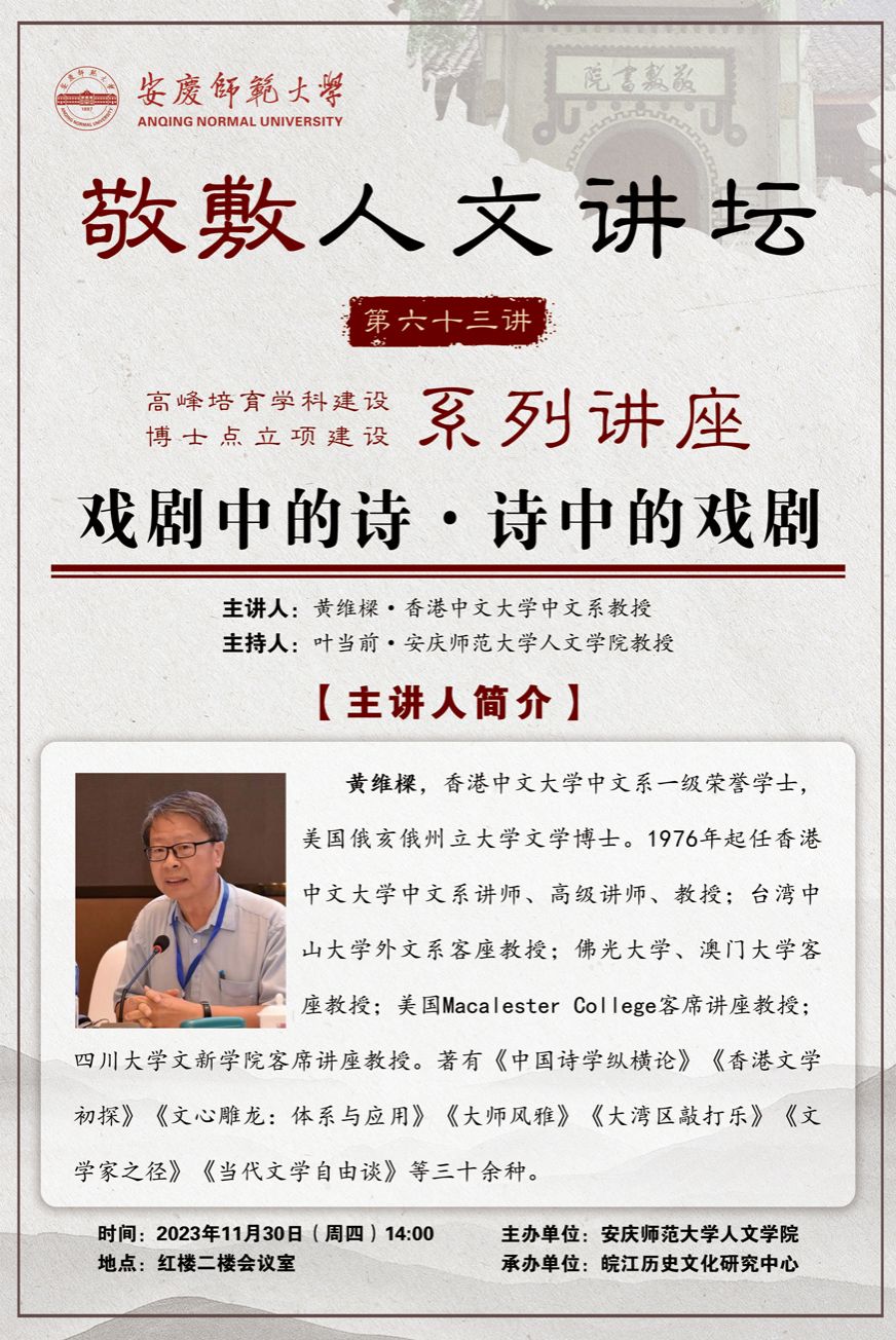 【敬敷人文讲坛(63)】戏剧中的诗·诗中的戏剧