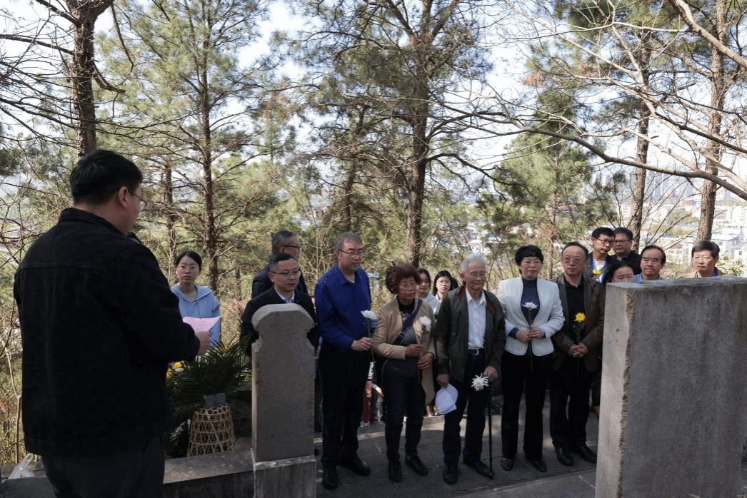随后,校长彭凤莲,校党委常委、副校长徐晓宁和与会代表前往拜谒刘文典墓,举行庄重的祭扫仪式。在刘文典先生墓前,大家肃立默哀,敬献花篮并三鞠躬,表达对刘文典先生的哀思与崇敬。学生代表擦拭墓碑,众人共同追思刘文典先生的学术成就与风骨气节。