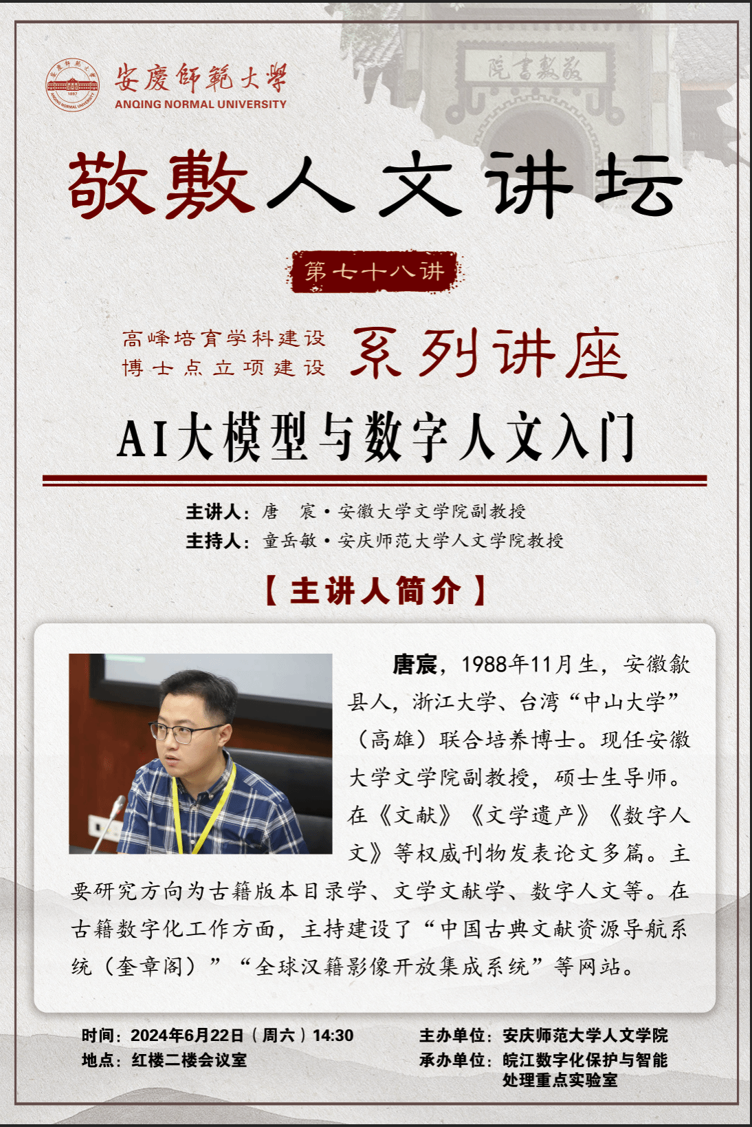 安徽大学唐宸副教授应邀做客敬敷人文讲坛