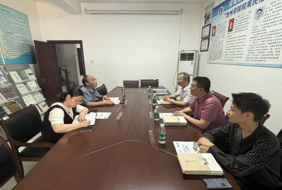 7月4日,校档案馆、博物馆馆长金仁义教授,中国中古史研究中心主任李正君博士,beat365平台官方网站硕士研究生谢天生、郑成伟前往安徽省高校人文社科重点研究基地池州学院皖南民俗文化研究中心开展考察交流活动。池州学院皖南民俗文化研究中心主任谈家胜教授和祝亚雯老师热情接待了金仁义、李正君等一行。双方就各自的建设发展问题举行了座谈。
