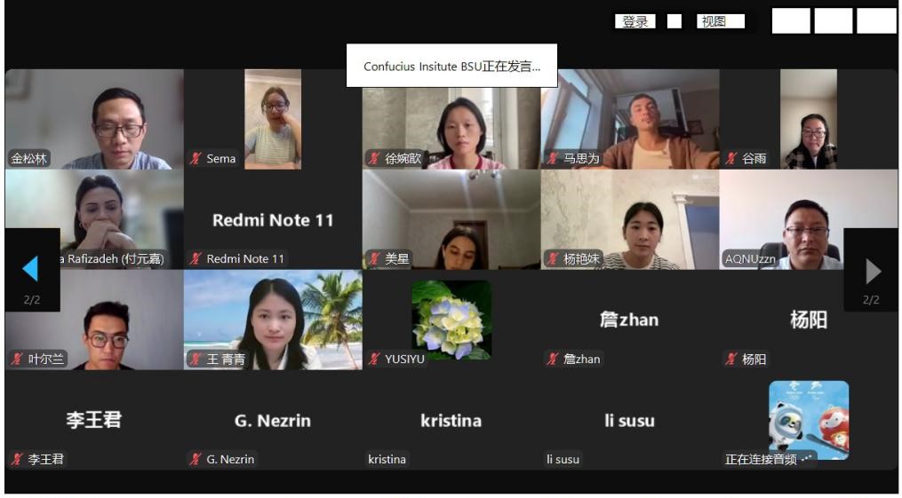 10 月12 日,应安徽大学阿塞拜疆巴库国立大学孔子学院邀请,beat365官网教育部语合中心“国际中文教育与黄梅戏沿‘一带一路’国家的协同传播研究”项目团队为该校孔子学院举办了“走进中国戏曲——黄梅戏专题讲座”。该活动系巴库国立大学孔子学院“庆祝2024年国际中文日和孔子学院20周年系列活动”之一。该院中方院长王浩强,我校国际交流与合作处处长张支南、学院副院长金松林分别致辞,介绍学校和学院的有关情况。本次活动由该校孔子学院中方教师曾春晓主持,30余名师生参与了此次活动。