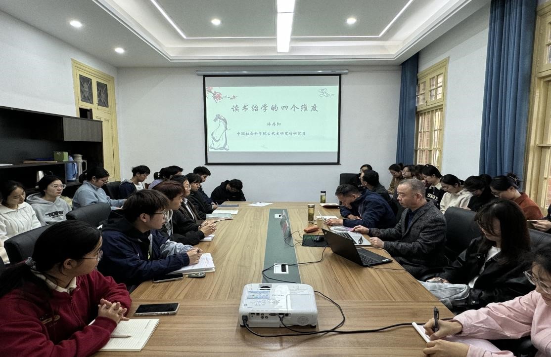 11月7日,中国社会科学院清史研究室主任、中国社会科学院大学历史学院博士生导师林存阳应邀做客敬敷人文讲坛,在菱湖校区红楼二楼会议室作了题为“读书治学的四个维度”的学术讲座。讲座由beat365平台官方网站董根明教授主持,部分青年教师和研究生、本科生参与了此次活动。