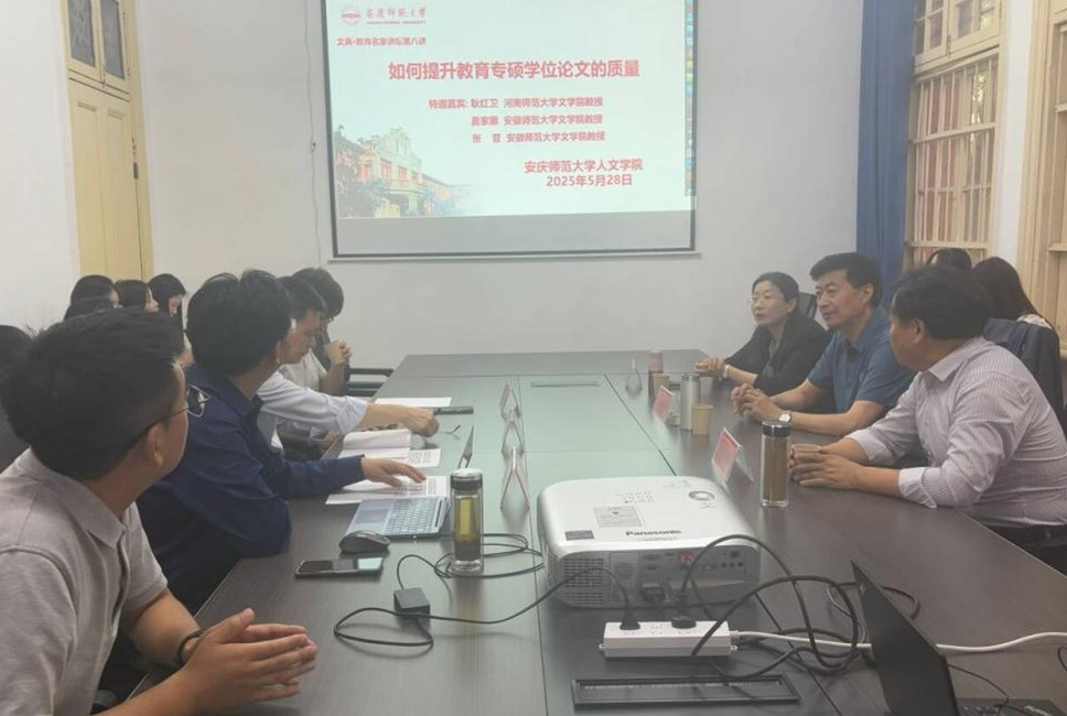 5月28日,文典·教育名家讲坛第八讲在红楼138会议室举行。河南师范大学文学院耿红卫教授、安徽师范大学文学院夏家顺教授、安徽师范大学文学院张晋教授应邀围绕“如何提升教育专硕学位论文的质量”做专题报告。beat365平台官方网站叶当前教授担任活动主持人,教育专硕领域导师芮文浩、徐先智、卢娇等参加与谈,beat365平台官方网站部分青年教师、学科教学(语文)(历史)等专业研究生现场聆听报告。
