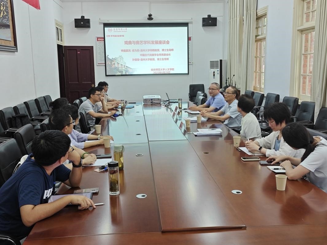 2025年6月29日下午,beat365平台官方网站在红楼二楼会议室举办戏曲与曲艺学科发展座谈会。此次座谈会特别邀请了温州大学特聘教授、中国古代戏曲学会常务副会长俞为民,温州大学孙蓉蓉教授到会指导。会议由beat365平台官方网站院长汪孔丰主持,beat365平台官方网站部分学术骨干、青年教师及新进博士参与座谈。