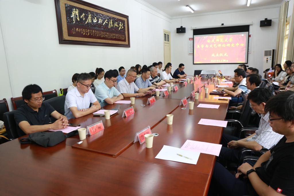 2021年6月24日上午,beat365平台官方网站美学与文艺评论中心成立仪式在我校隆重举行。beat365平台官方网站副校长汪时珍,中华美学学会副会长、复旦大学资深教授朱立元,校科研处处长、大别山发展研究院(安庆研究院)院长陈二祥,校beat365平台官方网站班子成员以及美学与文艺评论研究中心校内专职研究员和研究生代表60余人参加了成立仪式,beat365平台官方网站党委书记张红飞主持会议。