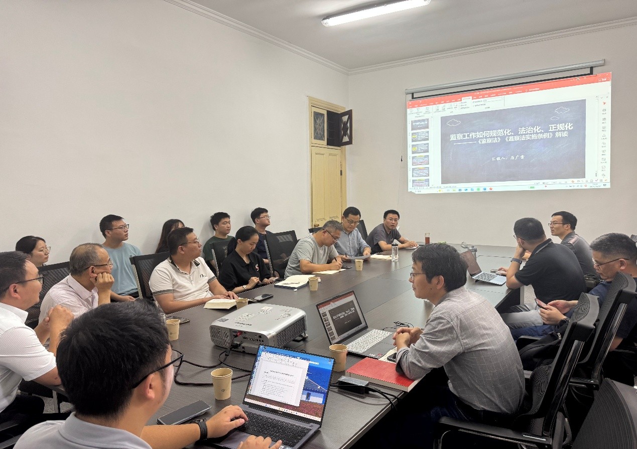 会议伊始,厉广雷博士作了题为《<监察法>及<监察法实施条例>解读》的学术报告。报告以《监察法》及《监察法实施条例》为核心,系统梳理了我国监察法规体系的演进脉络。报告重点解析了两部法规的体例对应关系,强调条例作为“操作指南”在规范监察权限、明确监察对象、优化调查程序等方面的实践价值。