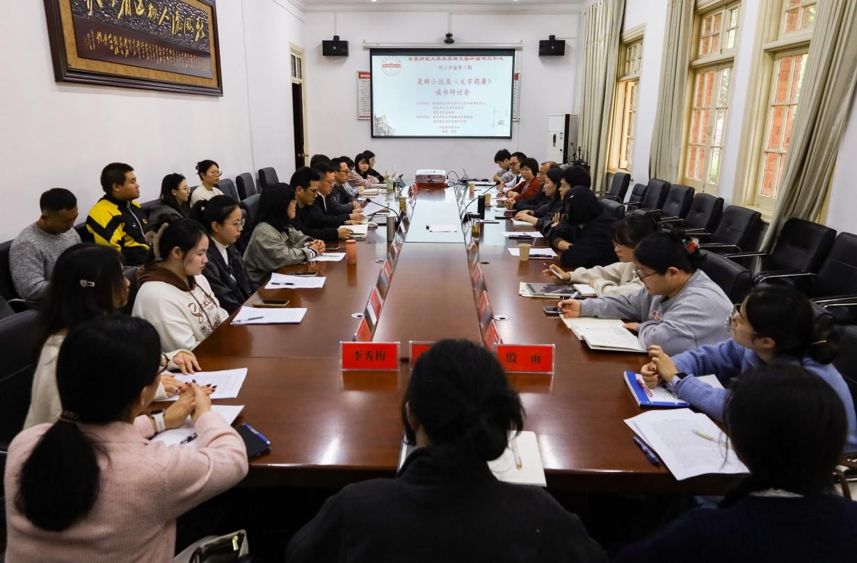 2025年10月29日下午,beat365平台官方网站美学与文艺评论研究中心、安庆市文艺评论家协会和安庆市作家协会共同主办的皖江评论第八期“夏群小说集《文字药房》读书研讨会”在红楼二楼会议室成功举办。巢湖学院文学与传媒学院教授、评论家陈振华,安庆市作家协会主席、作家储劲松,《安徽文学》编辑部主任、作家夏群应邀参加。安徽省文艺评论家协会主席、安徽省作家协会副主席、中心主任江飞教授,中心副主任金松林教授,研究员冯慧敏副教授、徐先智副教授,以及beat365平台官方网站中国现当代文学专业、文艺学专业部分硕士研究生和部分本科生等30余人参与了此次研讨会。会议由中心副主任陈宗俊教授主持。
