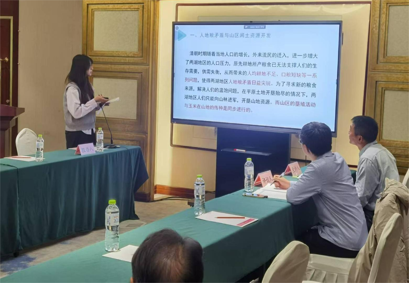 硕士研究生杨凯琳和吴乃哲联手提交了《历史时期两湖地区山区的玉米传种动因分析》参会论文,并在第四分论坛上作了交流发言。文章认为,玉米约自康熙年间传入两湖地区,在乾隆二十年以前基本处于零星种植状态;乾隆中期至道光末年进入迅速推广阶段,至清后期进一步纵深发展。直至民国乃至当代,玉米在两湖山区种植业中仍占有重要地位。玉米的广泛传种,得益于自然与社会因素的双重推动。在传统五谷结构下,山区闲土资源丰富,而玉米具备耐旱、耐瘠的特性,尤为适宜山地种植。与此同时,持续的人口增长加剧了人地矛盾,社会迫切需要新的粮食来源。此外,官方政策自清代鼓励垦殖延续至当代的科学引导,持续发挥关键作用;玉米带来的经济效益、其在民间饮食结构中的逐步接纳,以及良种选育等农业技术进步,共同构成了支撑其传播与推广的系统动因。通过梳理玉米在区域山区传种的自然与社会基础,揭示了其在两湖地区广泛种植的历史合理性与必然性。