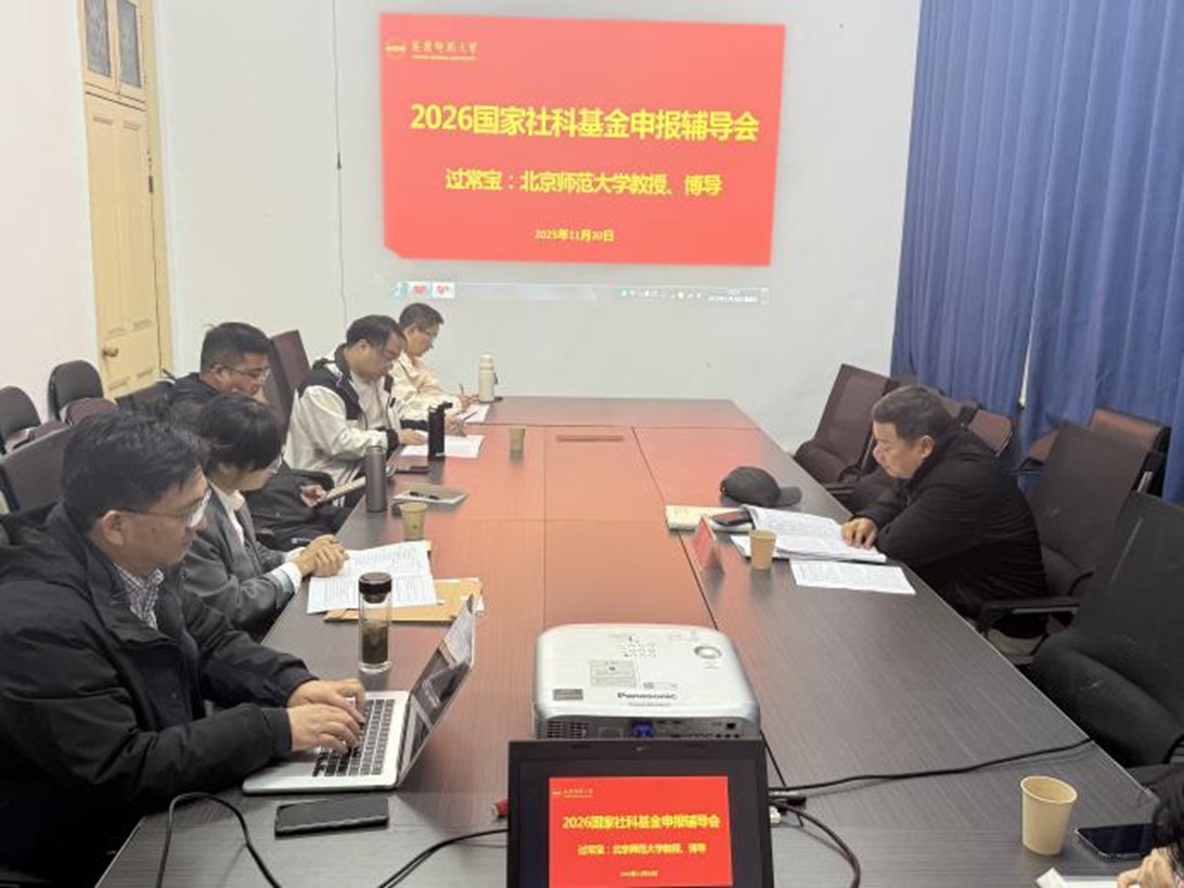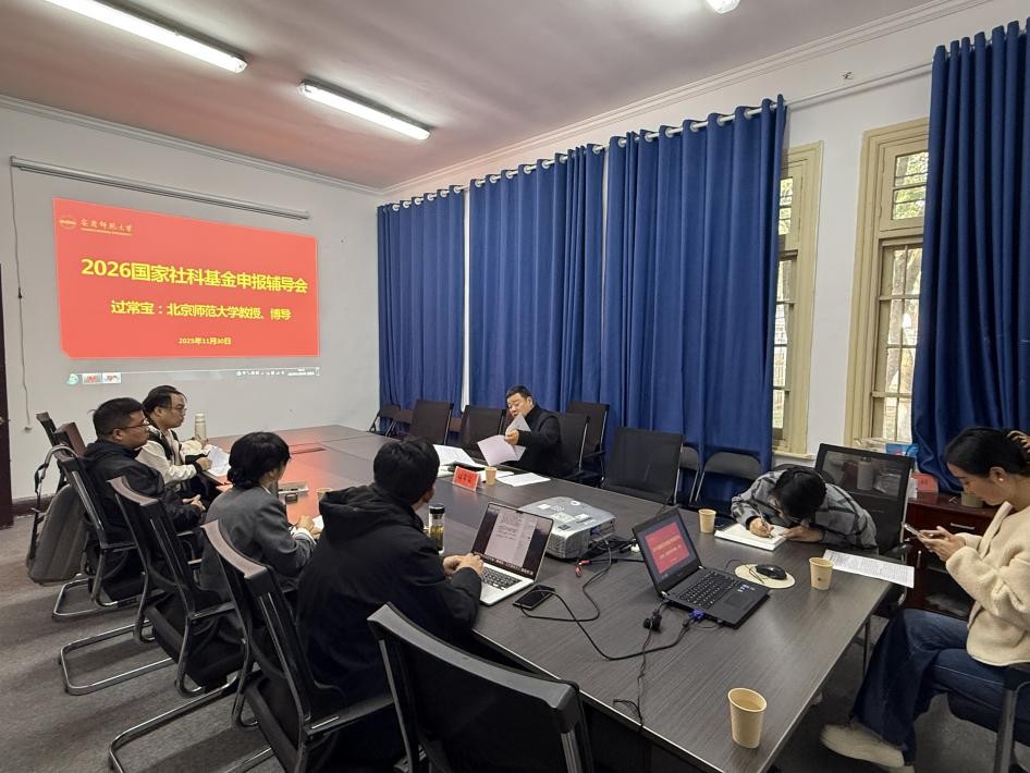 为提升教师国家社科基金项目申报质量,助力科研工作高质量发展,11月30日,beat365平台官方网站特邀北京师范大学文学院教授、博士生导师过常宝莅临学院,开展2026年度国家社科基金项目申报专题辅导会。beat365平台官方网站副院长张莹主持会议,2026年度项目申报教师、青年教师以及科研管理人员参与本次活动。