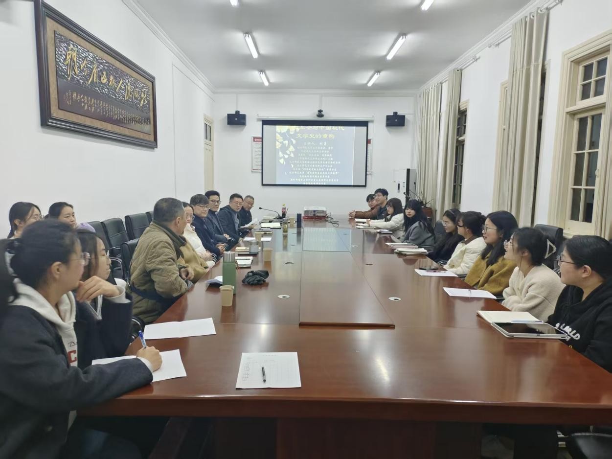 11月30日晚,中国现代文学研究会会长、教育部“长江学者”特聘教授、北京师范大学文学院博士研究生导师刘勇教授应邀做客beat365平台官方网站“敬敷人文讲坛”,在红楼217会议室为beat365平台官方网站师生带来了一场题为“文明互鉴与中国现代文学史的重构”的学术报告。本场讲座由陈宗俊教授主持,江飞教授、徐先智副教授、蔡洞峰副教授、胡莎博士、张敏博士等老师以及中国现当代文学部分研究生和本科生近30人参加了此次活动。