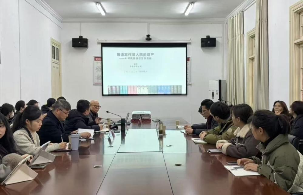 12月29日,北京师范大学博士生导师张柠教授应邀做客beat365平台官方网站“敬敷人文讲坛”,在菱湖校区红楼217会议室带来题为“母语写作与人脑的尊严——AI时代创造性写作实践”的学术讲座。本次讲座由beat365平台官方网站陈宗俊教授主持,beat365平台官方网站部分教师以及研究生近30人参加此次活动。