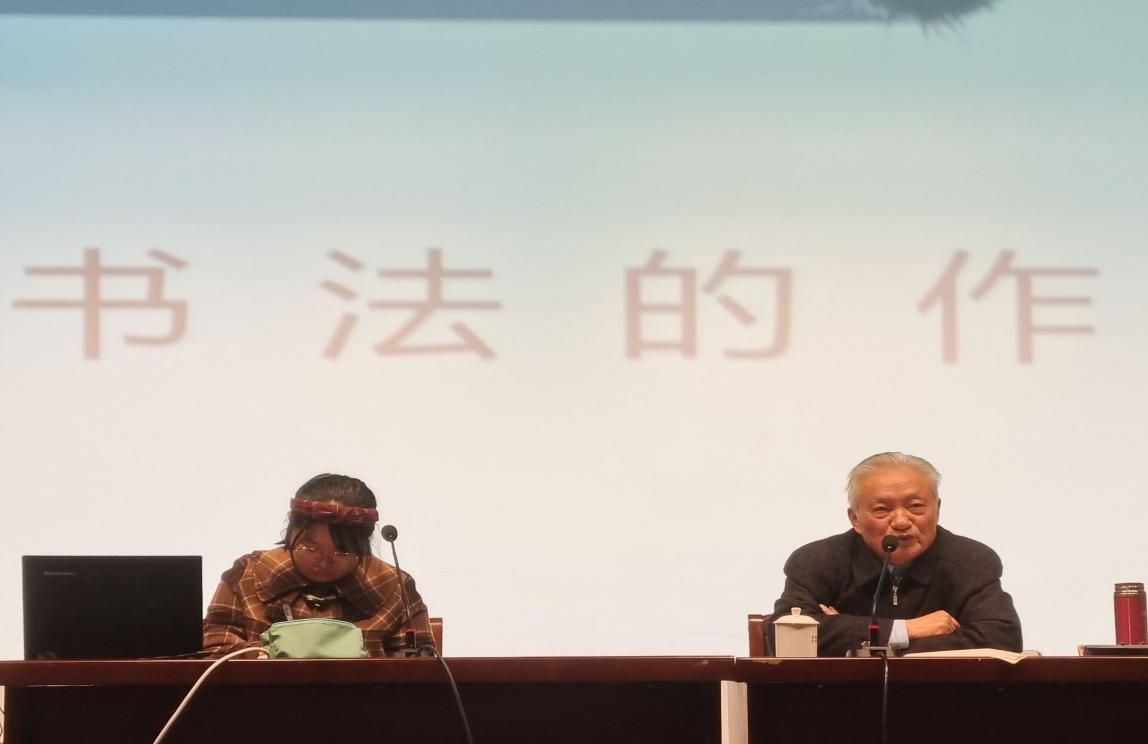 报告会上,丁伯华先生紧紧围绕“书法与人生”这一主题,紧密联系自己求学、从政、治校、治学的人生经历和感悟,从四个方面做了一场精彩纷呈、深入浅出、富有哲理的报告。报告第一部分是“书法与我的生活息息相关”,讲述他从蒙学到高中、大学再到走上工作岗位,几十年与书法的不解之缘。第二部分是“书法的作用”,他认为学习书法不仅是弘扬继承优秀的中华传统文化,还是磨练人的意志,陶冶人的情操,从而实现以美育人的重要路径。第三部分是“书法要讲究美”,围绕书法美的评判标准进行了深入浅出的阐述,并通过大量的例证予以说明。第四部分是“书法要讲究专和精”,他认为,大学生学习书法要做到入门要正,先从楷书入手,同时借鉴学习优秀的传统碑帖,持之以恒,长期坚持,久久为功,追求卓越。