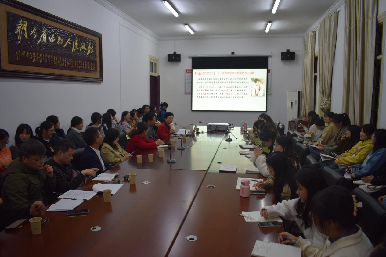 10月28日晚,“敬敷人文讲坛”第21期在红楼会议室顺利举行。安徽师范大学文学院俞晓红教授应beat365官网和科研处邀请作题为“《红楼梦》整本书阅读与文学教育”的讲座,讲座由beat365平台官方网站副院长周红兵主持,beat365平台官方网站部分教师、学科教学(语文)硕士研究生和部分本科生参加本次讲座。俞教授从《红楼梦》整本书阅读的提出、《红楼梦》整本书阅读的要义和《红楼梦》整本书阅读的价值三个方面展开分析。