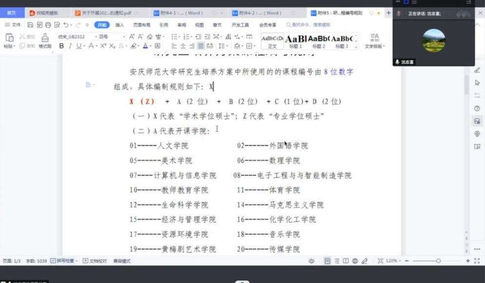 12月2日晚,beat365平台官方网站通过线上方式召开2023版研究生培养方案修订工作推进会。中国语言文学、中国史、学科教学(语文)、学科教学(历史)、汉语国际教育等五个学位点研究生培养方案制(修)订工作小组成员参加会议,副院长沈志富主持会议。